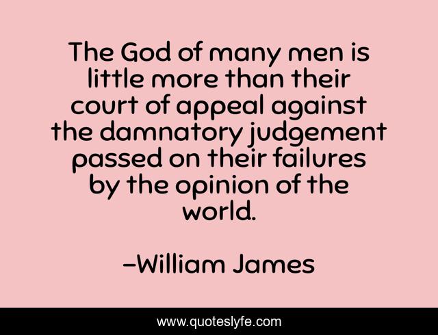 This page presents the quote "The God of many men is little more than their court of appeal against the damnatory judgement passed on their failures by the opinion of the world.". Author of this quote is William James. .