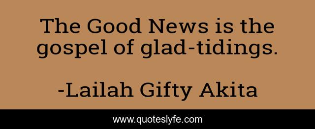 This page presents the quote "The Good News is the gospel of glad-tidings.". Author of this quote is Lailah Gifty Akita. This quote is about motivation, christian, good-news, gladness, religion, glad-tidings, gospel,.