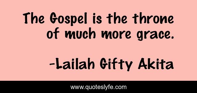 This page presents the quote "The Gospel is the throne of much more grace.". Author of this quote is Lailah Gifty Akita. This quote is about confidence, positive, motivational, christianity, optimistic, gospel, grace,.