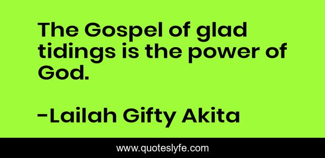 This page presents the quote "The Gospel of glad tidings is the power of God.". Author of this quote is Lailah Gifty Akita. This quote is about god, gospel, good-news, christianity,.