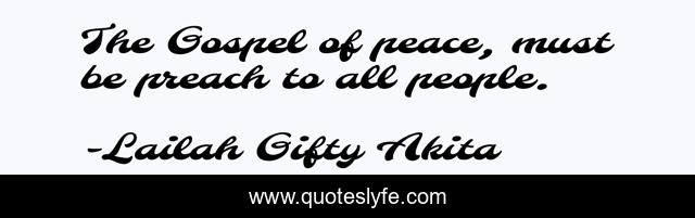 This page presents the quote "The Gospel of peace, must be preach to all people.". Author of this quote is Lailah Gifty Akita. This quote is about christian, people, peace, life-lessons, life-philosophy, gospel, preach,.