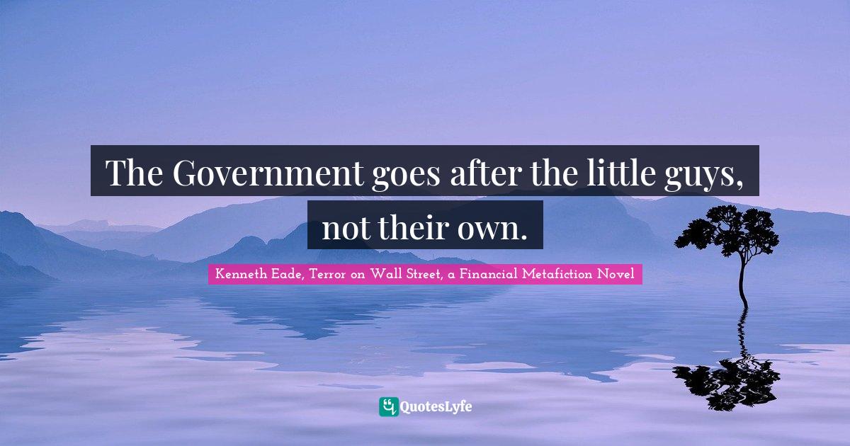 "Kenneth Eade, Terror on Wall Street, a Financial Metafiction Novel Quotes." Quoteslyfe.com, 2026. Tue. 13 Jan. 2026. <https://www.quoteslyfe.com/quote/The-Government-goes-after-the-little-guys-174125>.