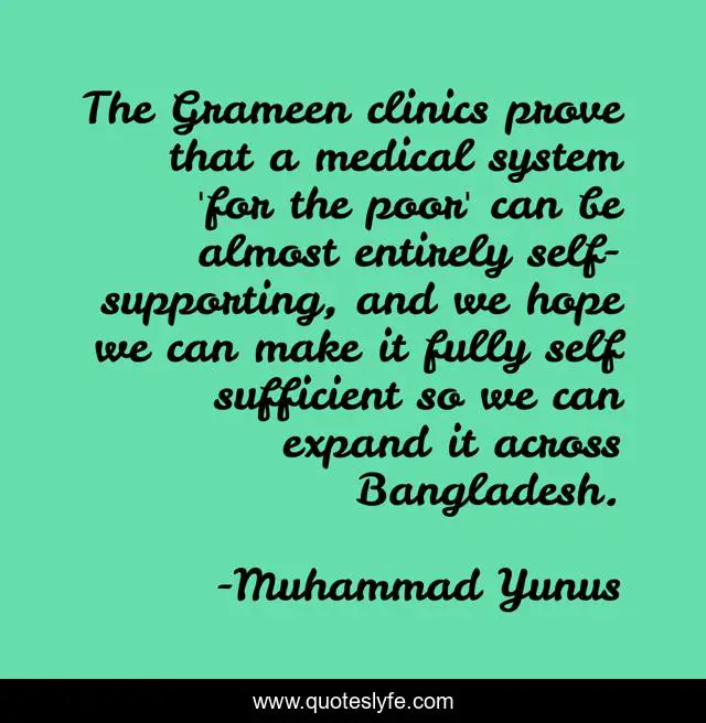 "Muhammad Yunus Quotes." Quoteslyfe.com, 2025. Sat. 06 Dec. 2025. <https://www.quoteslyfe.com/quote/The-Grameen-clinics-prove-that-a-medical-309640>.