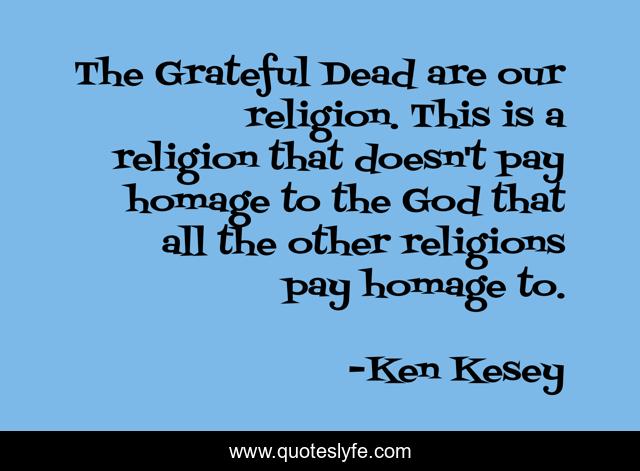 This page presents the quote "The Grateful Dead are our religion. This is a religion that doesn't pay homage to the God that all the other religions pay homage to.". Author of this quote is Ken Kesey. This quote is about god, grateful, religions,.