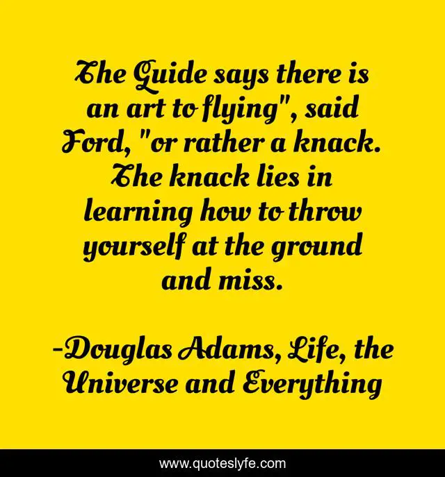 The Guide says there is an art to flying", said Ford, "or rather a knack. The knack lies in learning how to throw yourself at the ground and miss.