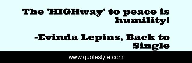 This page presents the quote "The 'HIGHway' to peace is humility!". Author of this quote is Evinda Lepins, Back to Single. This quote is about peace, humility,.