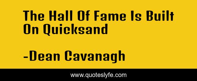 This page presents the quote "The Hall Of Fame Is Built On Quicksand". Author of this quote is Dean Cavanagh. .