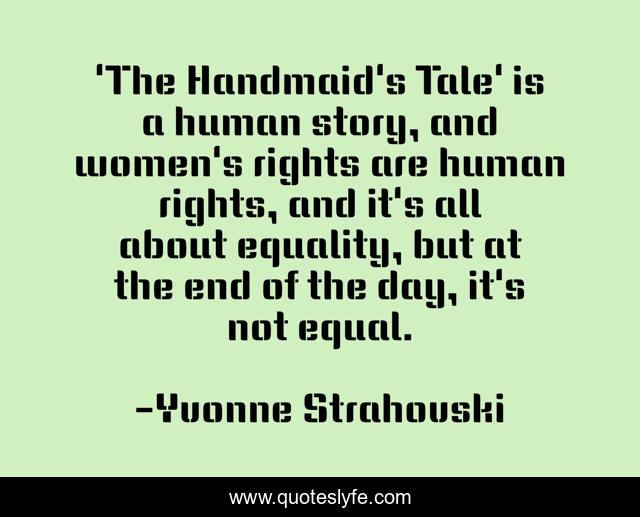 This page presents the quote "'The Handmaid's Tale' is a human story, and women's rights are human rights, and it's all about equality, but at the end of the day, it's not equal.". Author of this quote is Yvonne Strahovski. This quote is about end, day, women,.
