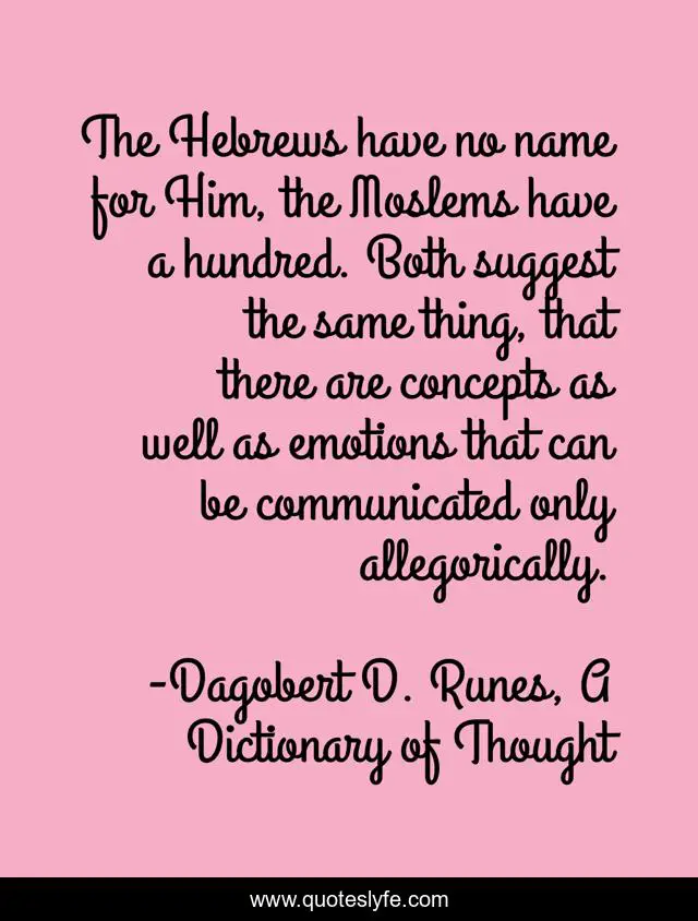 "Dagobert D. Runes, A Dictionary of Thought Quotes." Quoteslyfe.com, 2025. Fri. 05 Dec. 2025. <https://www.quoteslyfe.com/quote/The-Hebrews-have-no-name-for-Him-187614>.