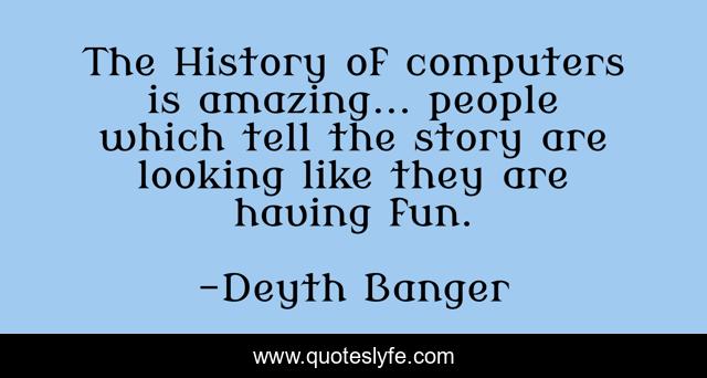 This page presents the quote "The History of computers is amazing... people which tell the story are looking like they are having fun.". Author of this quote is Deyth Banger. This quote is about amazing, computers, history, story, brief,.