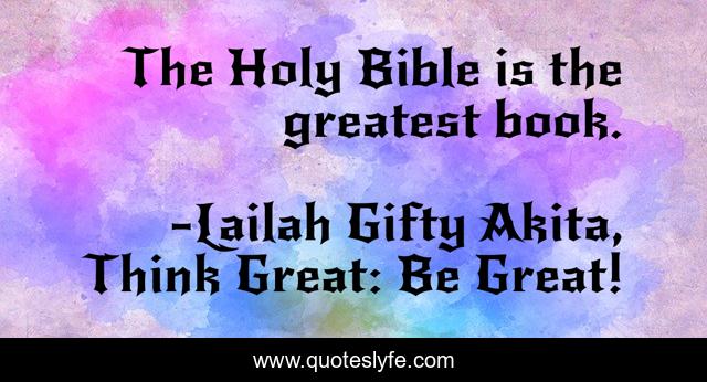 "Lailah Gifty Akita, Think Great: Be Great! Quotes." Quoteslyfe.com, 2025. Sat. 06 Dec. 2025. <https://www.quoteslyfe.com/quote/The-Holy-Bible-is-the-greatest-book-169163>.