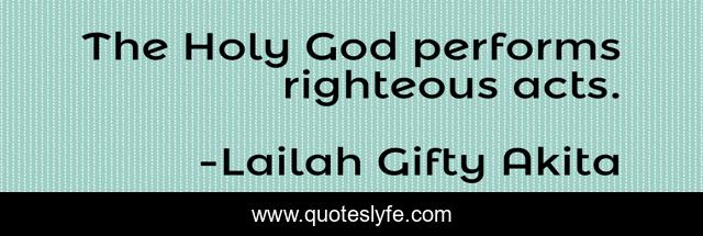 This page presents the quote "The Holy God performs righteous acts.". Author of this quote is Lailah Gifty Akita. This quote is about faith, christian, holy, god, deeds, actions, righteous,.