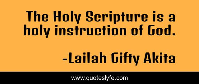 This page presents the quote "The Holy Scripture is a holy instruction of God.". Author of this quote is Lailah Gifty Akita. This quote is about faith, bible, christian, god, holy-writings, holy-bible, holy-scriptures, hope,.
