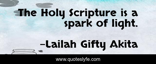 This page presents the quote "The Holy Scripture is a spark of light.". Author of this quote is Lailah Gifty Akita. This quote is about christian, inspiring, holy-sccripture, light,.