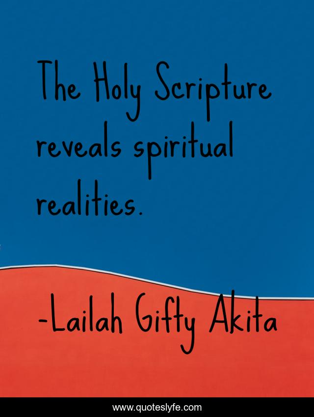 This page presents the quote "The Holy Scripture reveals spiritual realities.". Author of this quote is Lailah Gifty Akita. This quote is about holy-scripture, christian, bible-study, spiritual, christianity, inspirational, religious-faith, enthusiasm, realities,.