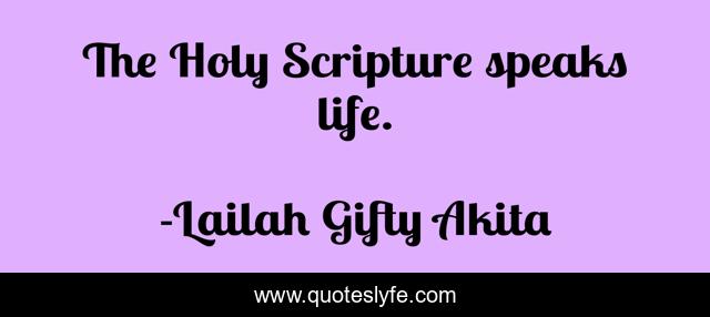 This page presents the quote "The Holy Scripture speaks life.". Author of this quote is Lailah Gifty Akita. This quote is about inspiring, positive-affirmation, life, life-lessons, holy-writings,.