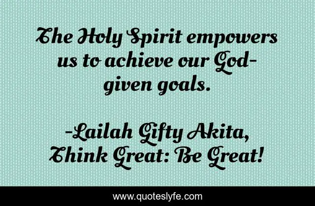 "Lailah Gifty Akita, Think Great: Be Great! Quotes." Quoteslyfe.com, 2025. Sun. 07 Dec. 2025. <https://www.quoteslyfe.com/quote/The-Holy-Spirit-empowers-us-to-achieve-85198>.