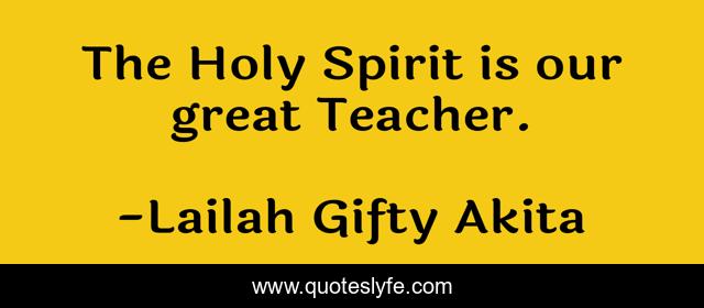 This page presents the quote "The Holy Spirit is our great Teacher.". Author of this quote is Lailah Gifty Akita. This quote is about education-christian, holy-spirit, teacher, theology,.