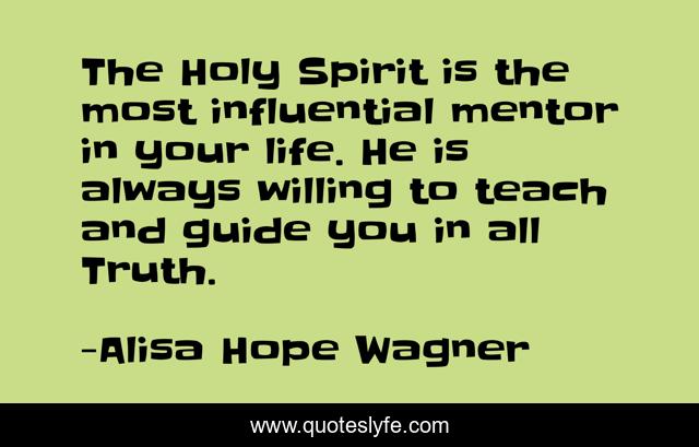 This page presents the quote "The Holy Spirit is the most influential mentor in your life. He is always willing to teach and guide you in all Truth.". Author of this quote is Alisa Hope Wagner. This quote is about mentor, truth, holy-spirit,.