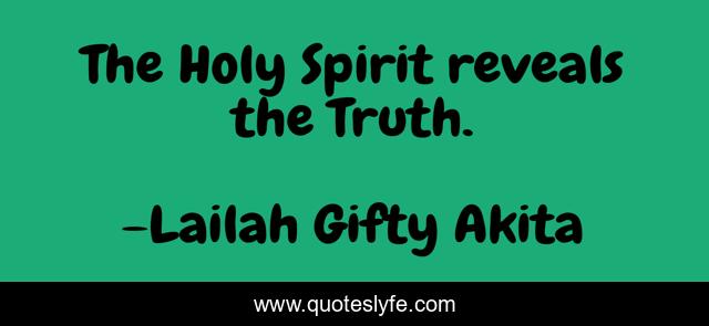 This page presents the quote "The Holy Spirit reveals the Truth.". Author of this quote is Lailah Gifty Akita. This quote is about inspiring, christian, religion, spirituality, truth, holy-spirit,.