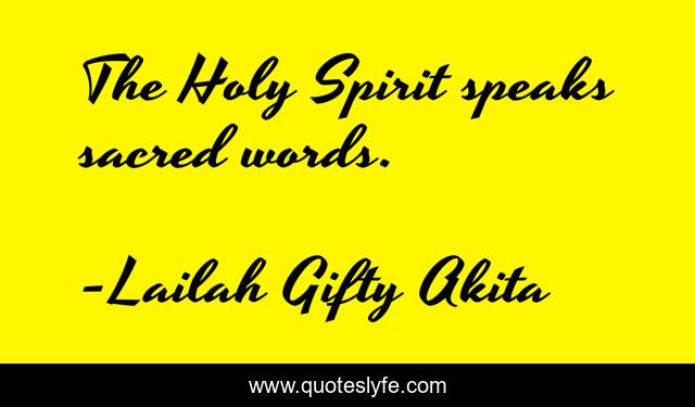 This page presents the quote "The Holy Spirit speaks sacred words.". Author of this quote is Lailah Gifty Akita. This quote is about spiritual, sacred-words, holy-spirit,.