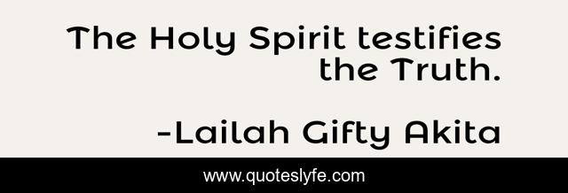 This page presents the quote "The Holy Spirit testifies the Truth.". Author of this quote is Lailah Gifty Akita. This quote is about inspiring, christian, truth, holy-spirit,.