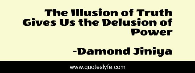 This page presents the quote "The Illusion of Truth Gives Us the Delusion of Power". Author of this quote is Damond Jiniya. This quote is about empowerment, truth,.