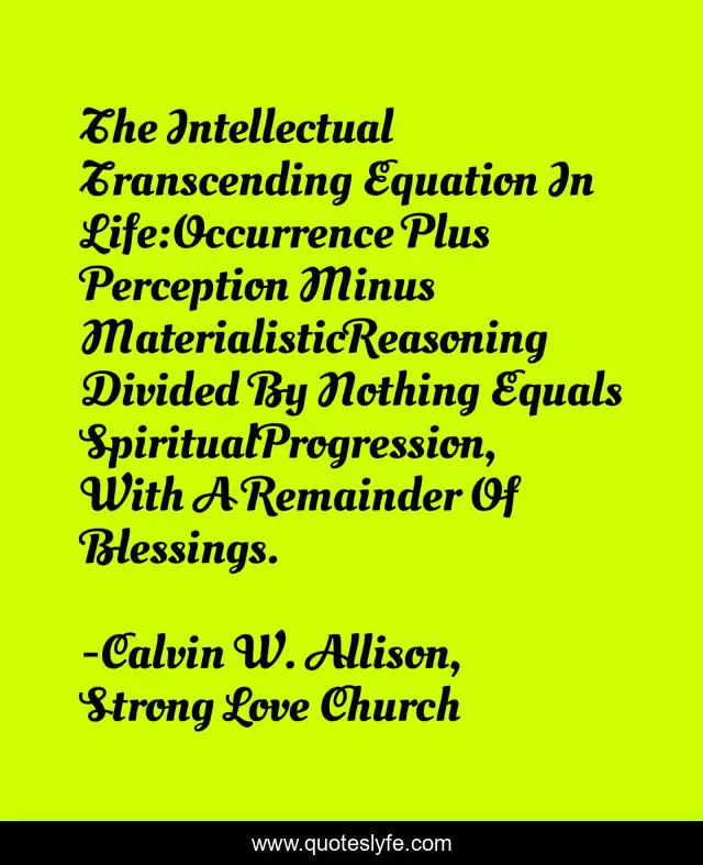 "Calvin W. Allison, Strong Love Church Quotes." Quoteslyfe.com, 2025. Sat. 06 Dec. 2025. <https://www.quoteslyfe.com/quote/The-Intellectual-Transcending-Equation-In-Life-Occurrence-187167>.