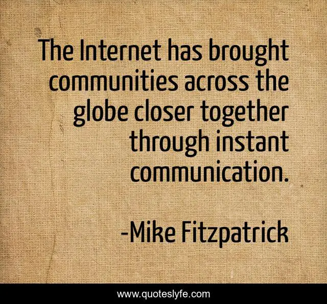 "Mike Fitzpatrick Quotes." Quoteslyfe.com, 2025. Fri. 05 Dec. 2025. <https://www.quoteslyfe.com/quote/The-Internet-has-brought-communities-across-the-288508>.