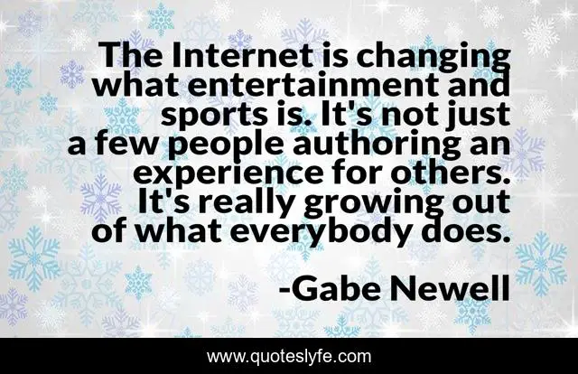 This page presents the quote "The Internet is changing what entertainment and sports is. It's not just a few people authoring an experience for others. It's really growing out of what everybody does.". Author of this quote is Gabe Newell. This quote is about internet, experience, people,.
