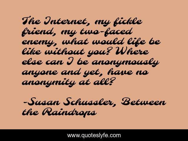 "Susan Schussler, Between the Raindrops Quotes." Quoteslyfe.com, 2025. Fri. 05 Dec. 2025. <https://www.quoteslyfe.com/quote/The-Internet-my-fickle-friend-my-two-243528>.