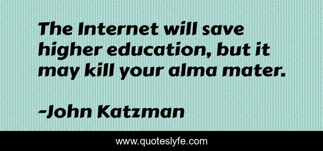 This page presents the quote "The Internet will save higher education, but it may kill your alma mater.". Author of this quote is John Katzman. This quote is about higher education, internet,.