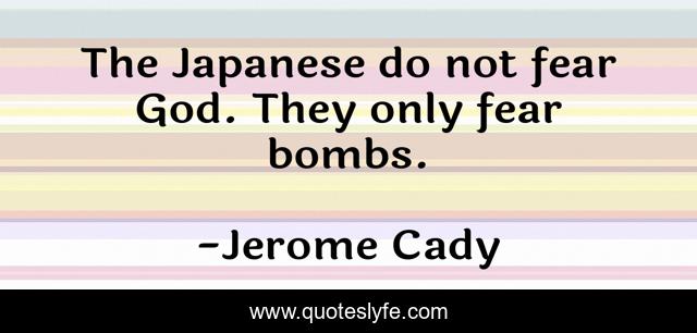This page presents the quote "The Japanese do not fear God. They only fear bombs.". Author of this quote is Jerome Cady. This quote is about god, only, japanese,.