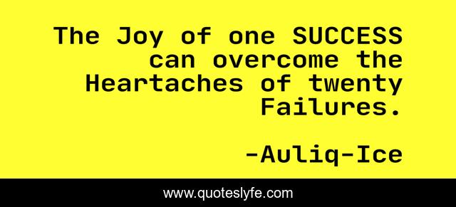 This page presents the quote "The Joy of one SUCCESS can overcome the Heartaches of twenty Failures.". Author of this quote is Auliq-Ice. This quote is about hard-work-pays-off, change, success,.
