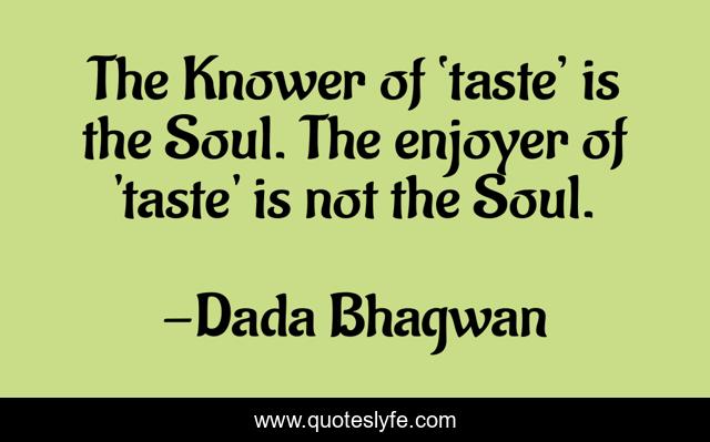 This page presents the quote "The Knower of ‘taste’ is the Soul. The enjoyer of 'taste' is not the Soul.". Author of this quote is Dada Bhagwan. This quote is about taste, spiritual, soul,.