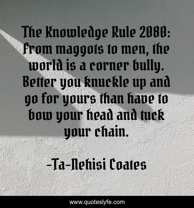 "Ta-Nehisi Coates Quotes." Quoteslyfe.com, 2025. Fri. 05 Dec. 2025. <https://www.quoteslyfe.com/quote/The-Knowledge-Rule-2080-From-maggots-to-220470>.