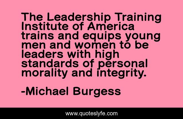 This page presents the quote "The Leadership Training Institute of America trains and equips young men and women to be leaders with high standards of personal morality and integrity.". Author of this quote is Michael Burgess. This quote is about training, integrity, women,.