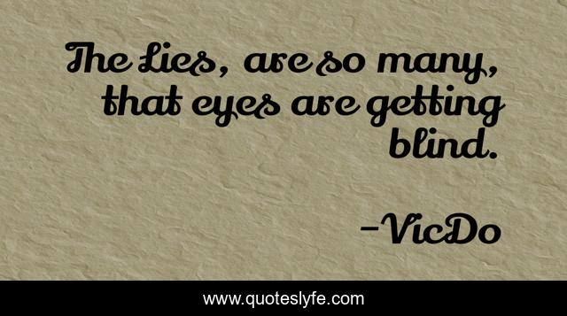 This page presents the quote "The Lies, are so many, that eyes are getting blind.". Author of this quote is VicDo. This quote is about blind, lie, eyes,.