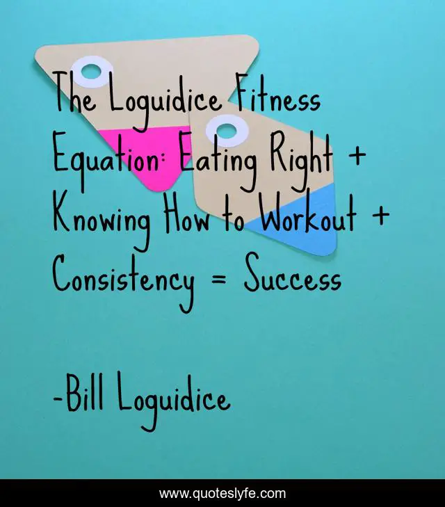 This page presents the quote "The Loguidice Fitness Equation: Eating Right + Knowing How to Workout + Consistency = Success". Author of this quote is Bill Loguidice. This quote is about fitness, psychology, inspiration,.
