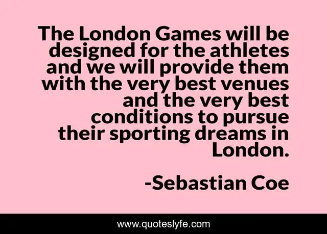 This page presents the quote "The London Games will be designed for the athletes and we will provide them with the very best venues and the very best conditions to pursue their sporting dreams in London.". Author of this quote is Sebastian Coe. This quote is about london, games, best,.