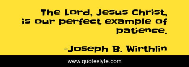 This page presents the quote "The Lord, Jesus Christ, is our perfect example of patience.". Author of this quote is Joseph B. Wirthlin. This quote is about perfect, example, christ,.