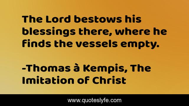 This page presents the quote "The Lord bestows his blessings there, where he finds the vessels empty.". Author of this quote is Thomas à Kempis, The Imitation of Christ. This quote is about blessings, grace, self-denial,.