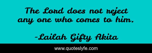 This page presents the quote "The Lord does not reject any one who comes to him.". Author of this quote is Lailah Gifty Akita. This quote is about pray, god, christian, lord, sinner,.