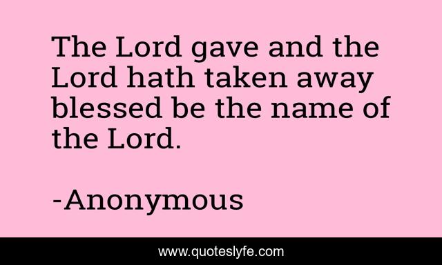 This page presents the quote "The Lord gave and the Lord hath taken away blessed be the name of the Lord.". Author of this quote is Anonymous. .