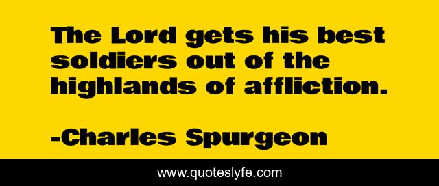 This page presents the quote "The Lord gets his best soldiers out of the highlands of affliction.". Author of this quote is Charles Spurgeon. This quote is about soldiers, best, lord,.