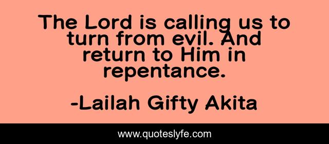 This page presents the quote "The Lord is calling us to turn from evil. And return to Him in repentance.". Author of this quote is Lailah Gifty Akita. This quote is about motivation, forgiveness, saved-souls, spiritual, sins,.