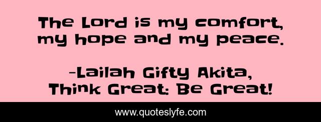 "Lailah Gifty Akita, Think Great: Be Great! Quotes." Quoteslyfe.com, 2025. Sat. 06 Dec. 2025. <https://www.quoteslyfe.com/quote/The-Lord-is-my-comfort-my-hope-140380>.