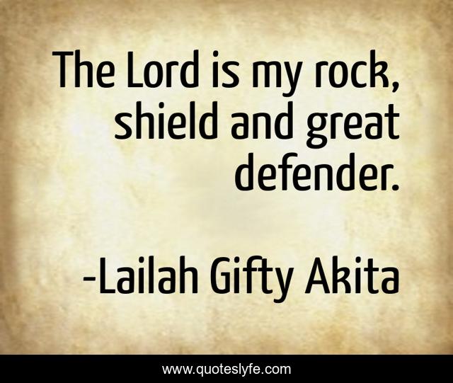 This page presents the quote "The Lord is my rock, shield and great defender.". Author of this quote is Lailah Gifty Akita. This quote is about shield, enthusiasm, inspirational, defender, inspirational-life, lord,.