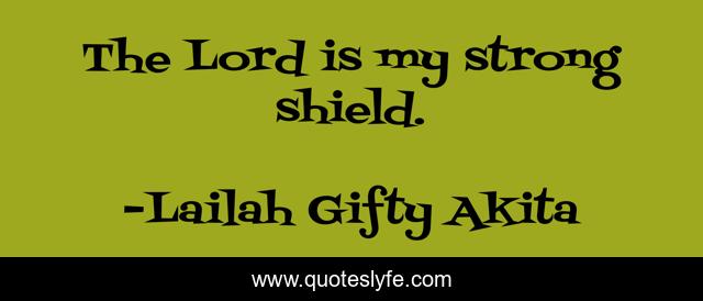 This page presents the quote "The Lord is my strong shield.". Author of this quote is Lailah Gifty Akita. This quote is about faith, christian-life, protection,.