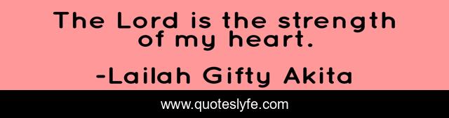 This page presents the quote "The Lord is the strength of my heart.". Author of this quote is Lailah Gifty Akita. This quote is about confidence, strength, positive, motivational, spirituality, optimistic,.